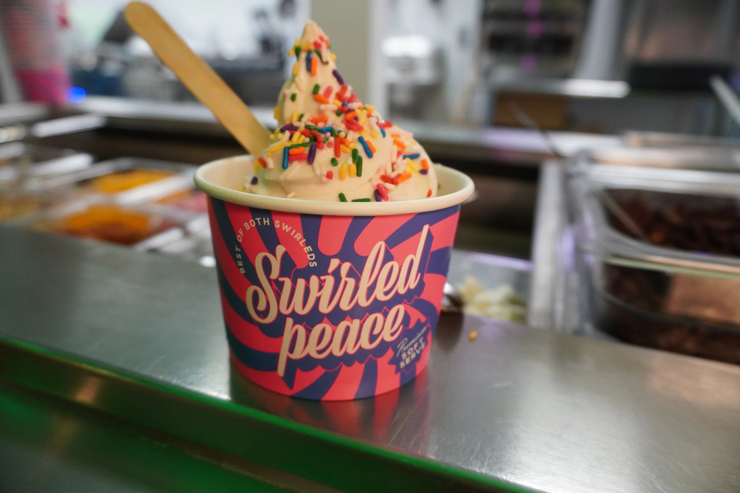 Swirled Peace is turning ONE YEAR OLD, and we’re going to party about it! We’ll have art vendors, a live DJ set by Seraphim, catering by Revolution Vegan Cuisine, and of course… Swirled Peace’s very own Premium Soft Serve! Come party with us on July 5th from 7 PM to midnight to celebrate our first anniversary!